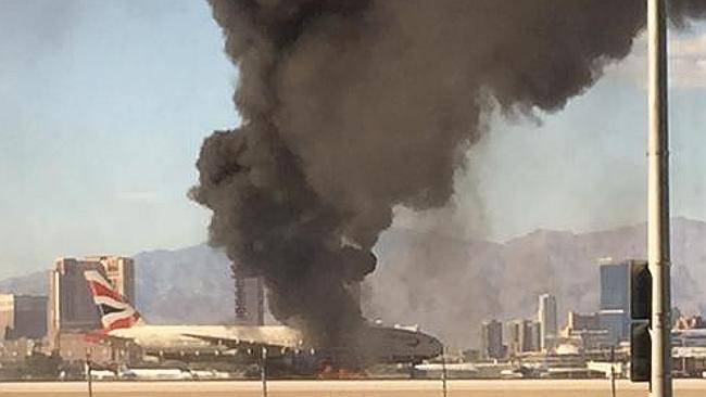 #BREAKING heavy smoke rises from burning British Airways jet at #LasVegas airport (via @pberberian) pic.twitter.com/02TuB3aoAE