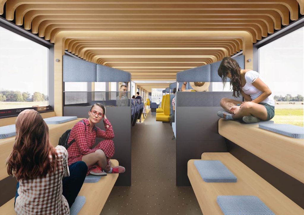 A holland vasútnak tervezett kocsikat ennek megfelelően úgy tervezték, hogy többféle igénynek is megfeleljenek. A képek alapján az az érzésünk támadhat, mintha egy alternatív univerzumba csöppennénk, ahol nem csak az nem számít bunkóságnak, ha magad mellé rakod a táskát az ülésre, de ha sokat ingázol, akár egy komplett irodát is kialakíthatsz a vonaton.