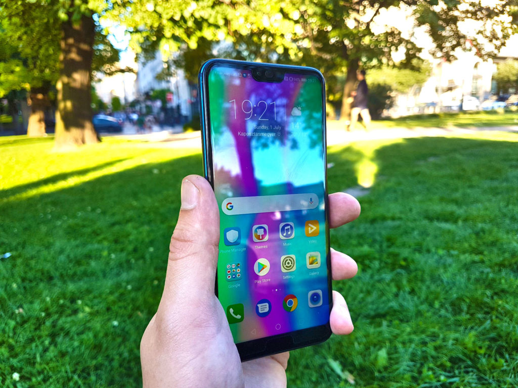 A telefon a megjelenésével is egy ízig-vérig kétszázezer feletti telefon benyomását kelti: bár a kijelzőbe felülről belógó kamerafül (avagy notch) eléggé elcsépeltnek hat, a Honornak a telefon fényezésével mégis sikerült megkülönböztetnie a Honor 10-et az összes többi füles telótól. A 2280x1080 pixeles kijelző ugyan AMOLED helyett LCD, de azért ez ma még a csúcskategóriában sem számít akkora negatívumnak, ami miatt sikítva dobnánk el a telefont.