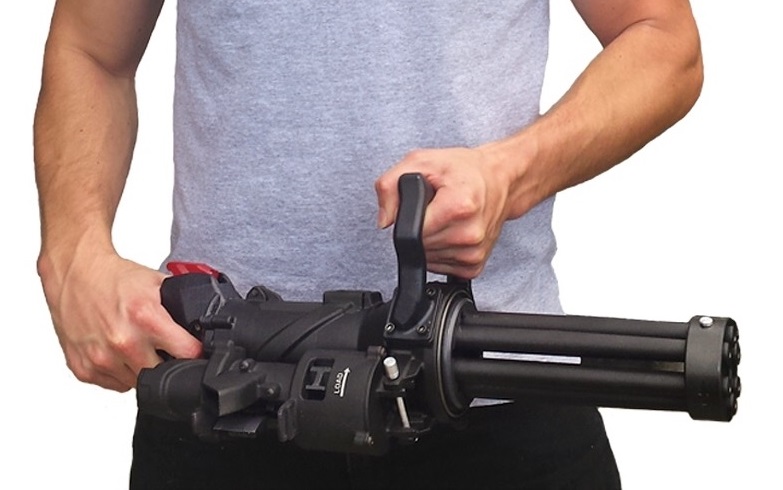 Persze az akciófilmekben a Minigun azért volt hordozható, mert Schwarzenegger játszi könnyedséggel kapta a hóna alá - na ez az, ami a valóságban nem működik, így a texasi Empty Shell lekicsinyítette a legendás fegyvert, hogy tényleg kézben is hordozható legyen.