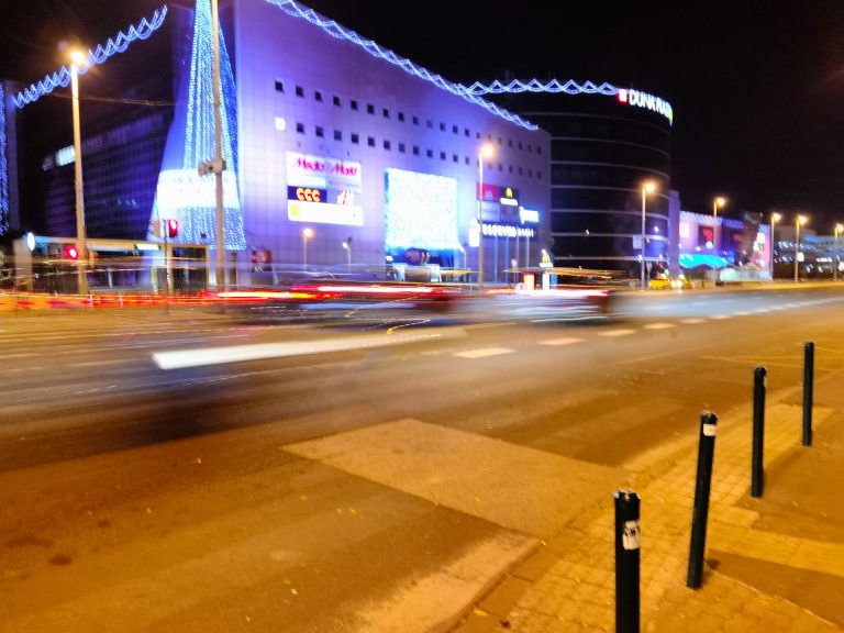 A Mate 40 Pro képességei az éjszakai fotózásban is kiemelkedőek, ehhez ráadásul általában az éjszakai módot sem kell bekapcsolnunk, a telefon egészen gyenge fényviszonyok között is értékelhető fotókat tud készíteni. Nagyon jó ötlet, hogy bár a telefonban van Pro mód is, az éjszakai felvételeknél külön állíthatjuk az ISO-t és a zársebességet. Ezzel tapasztalataink szerint sokkal szebb hosszú záridős fotókat lehet csinálni, mint a fényfestés funkcióval, ráadásul mivel a záridő mellett az ISO-t is állíthatjuk, attól sem kell félnünk, hogy a fotóink túlexponáltak lesznek. Mivel a telefon rendkívül jól stabilizálja a képet, így akár több másodperces expozíciós idővel is nyugodtan dolgozhatunk állvány nélkül is. Az éjszakai fotóknál az egyetlen probléma a mesterséges intelligencia működése lehet, ami néha erősen átkalibrálja a színeket, vagy annyira igyekszik kivilágosítani a fotót, hogy szinte minden árnyékot eltüntet róla, így egy erősen mesterséges hatású képet hozva létre, de ez szerencsére ritkán fordul csak elő.