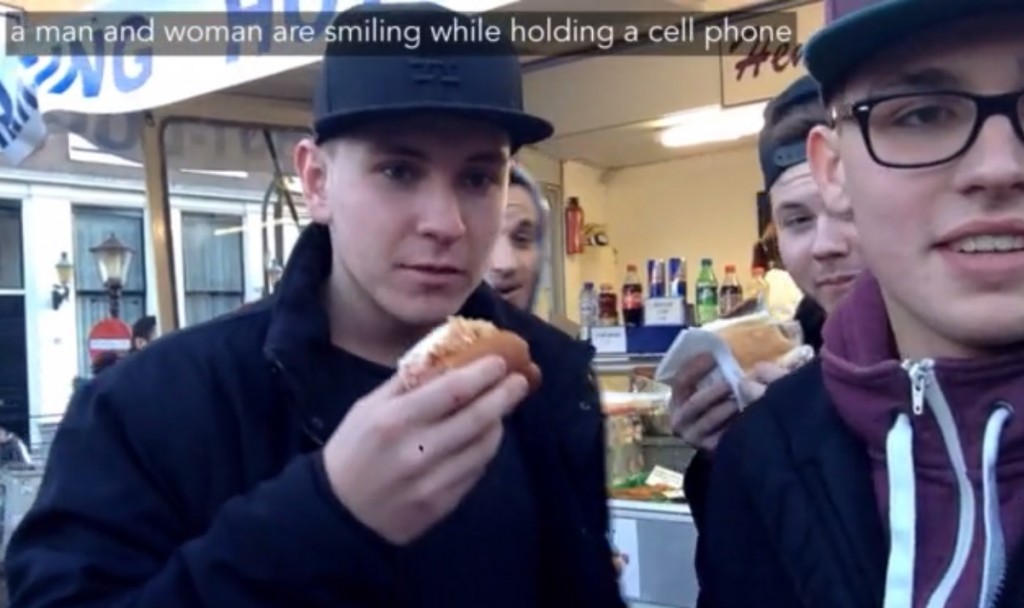 A NeuralTalk a bal felső sarokban feliratozta, hogy mit lát, és az azért elég durva, hogy szinte teljesen pontosan sikerült megneveznie, hogy mi folyik körülötte. Mindeközben meg azért kicsit olyan, mintha egy őrült ember kommentálná a világot, aki telefonnak nézi a hotdogot, vasútállomásnak a lépcsőt, és néha olyanokat lát, mint hogy egy madár repül el a víz felett. Szóval egyszerre lenyűgöző és kicsit nyomasztó is, de azért nagyon durva belegondolni, mennyit segíthetne egy ilyen rendszer például a látássérülteknek, ha kicsit még sikerülne javítani a pontosságán.