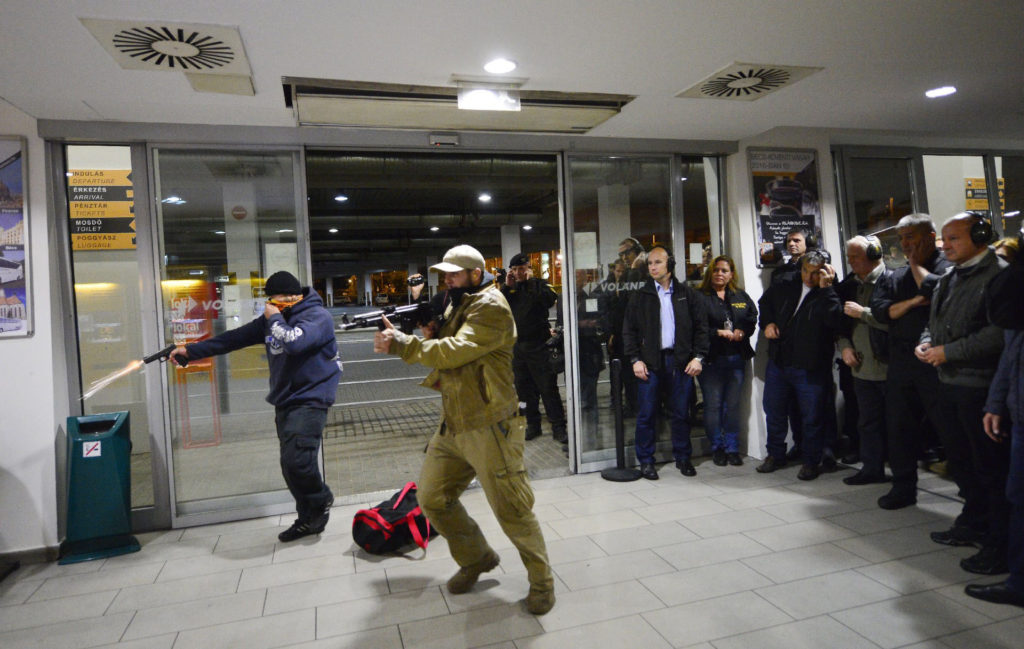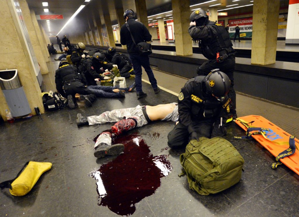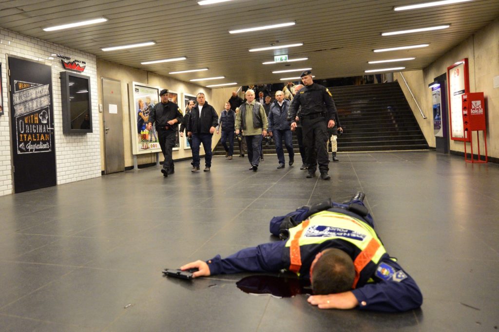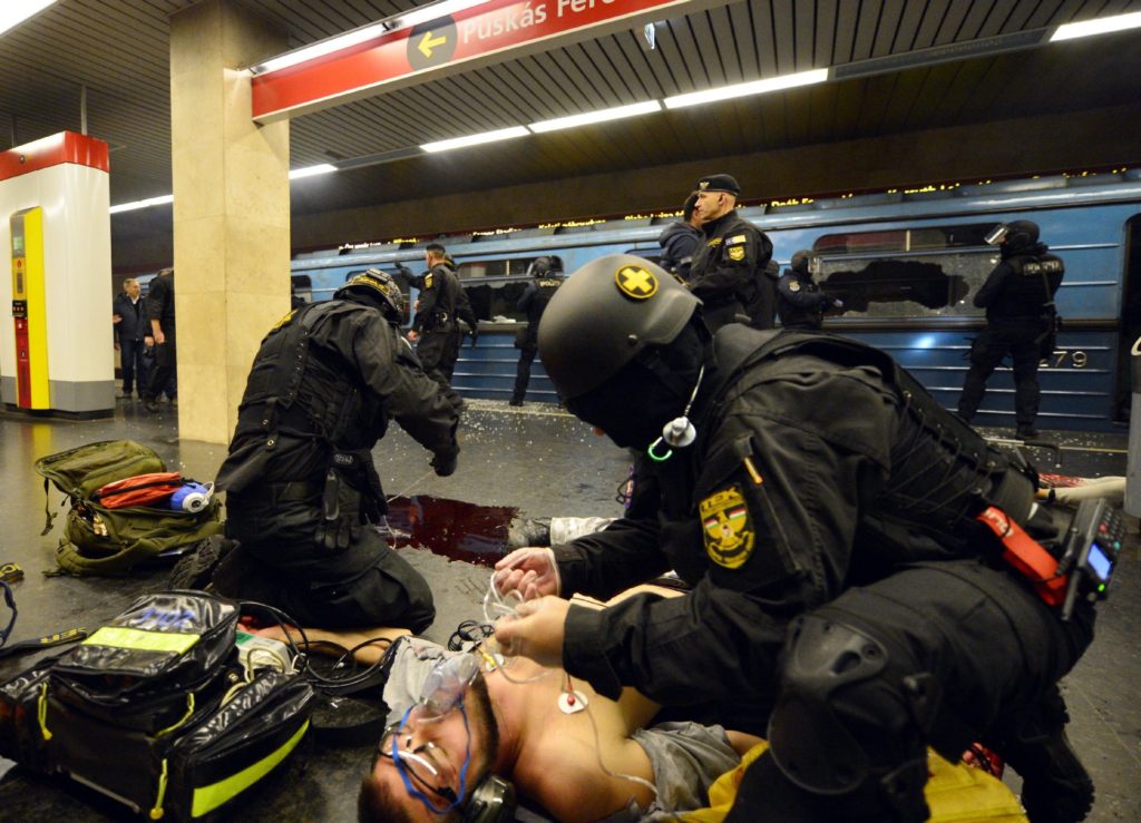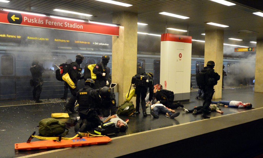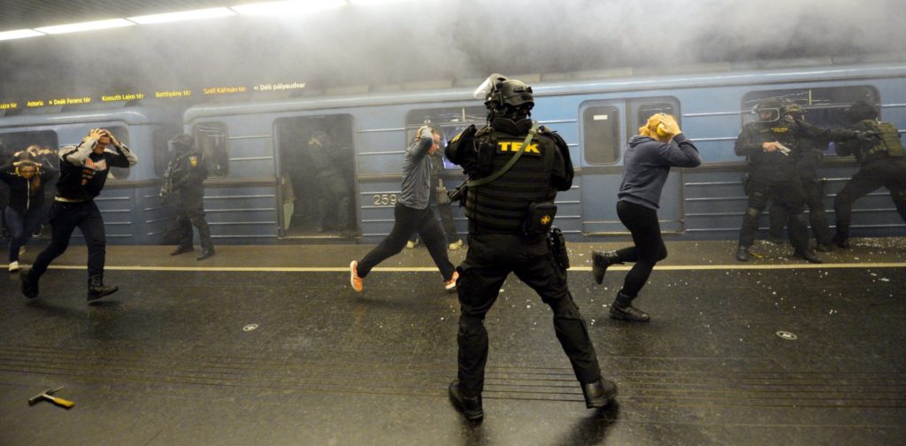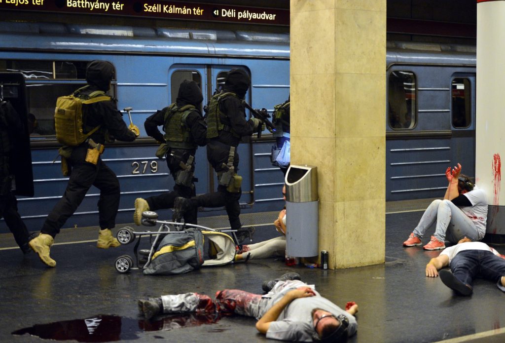A Terrorelhárítási Központ szerda éjszaka a 2-es metró Puskás Ferenc stadion állomásánál tartott nagyszabású gyakorlatot, amiben azt modellezték, mi történne, ha néhány fegyveres terrorista a Stadionok buszpályaudvarról indulva lerohanná a metróállomást. Nem aprózták el a dolgot, az MTI által készített fotókból mintha csak egy akciófilm kulisszái mögé nyerhetnénk bepillantást.