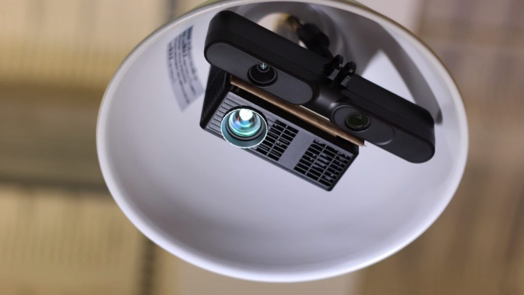Bár hasonló megoldást korábban már láthattunk a Sonytól is, a Carnegie Mellon egyetem találmánya abból a szempontból mindenképpen egyedülálló, hogy itt a projektor nem az asztalon helyezkedik el, hanem a villanykörte helyére lehet becsavarni, így nagyobb mozgásteret ad a felhasználónak.