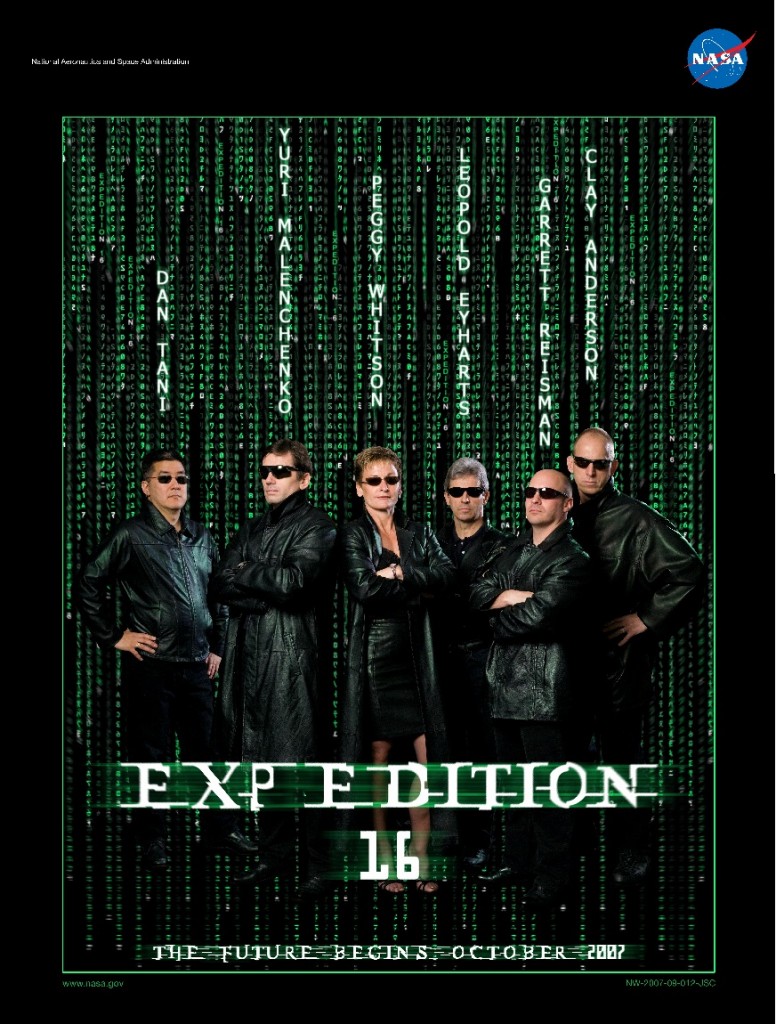 És ez még csak a jéghegy csúcsa, ugyanis a NASA-nál már hagyománya van, hogy a missziók előtt mindig összedobnak valami hasonlót, az eddigi negyvenöt bevetés pedig bőven adott alkalmat a kreativitás megnyilvánulására. A 16. expedíción például Mátrixnak öltöztek, de voltak már a Galaxis Útikalauz Stopposoknak szereplői és Beatles is.