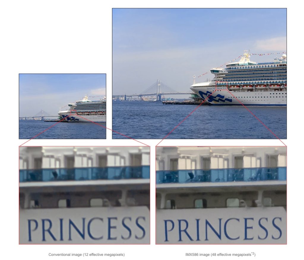 A hatalmas szenzor legnagyobb előnye viszont gyenge fényviszonyok mellett mutatkozik meg: az IMX586 képes egyesíteni négy pixelt, így létrehozva egy 12 megapixeles, a hagyományosnál négyszer világosabb képet.