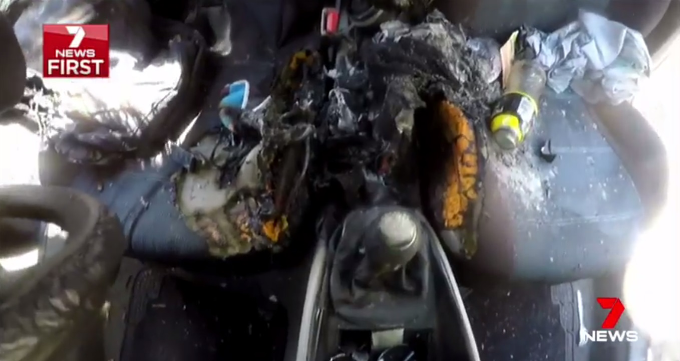 Elmondása szerint mire visszaért az autóhoz, a füst akkor volt, hogy a kocsi ablakain nem is lehetett belátni, az elszenesedett nadrágban pedig megtalálta a megolvadt telefont.