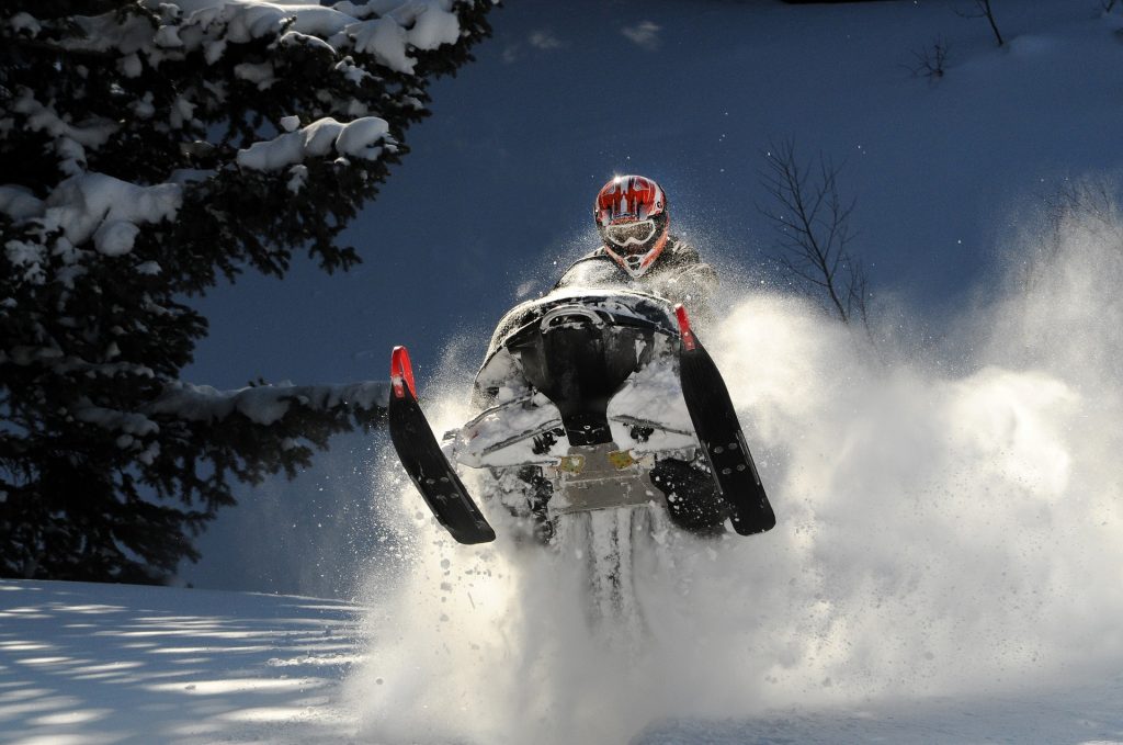 A képen jól megfigyelhető, melyik az az alkatrész a hómobilon, ami havon nagyszerű, hó nélkül viszont nehézkessé teszi a közlekedést: