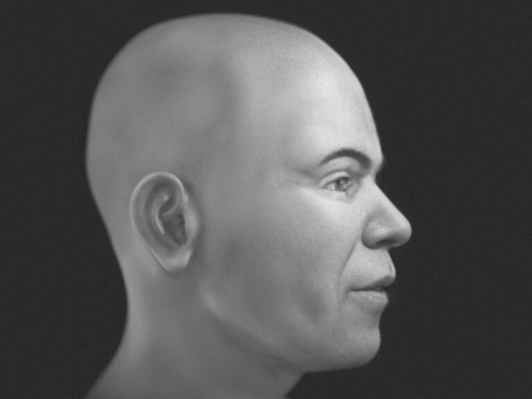 A férfi arcát korszerű igazságügyi arcrekonstrukciós eljárással állították helyre. A 21 darabra töredezett koponyát CT-vizsgálattal digitalizálták, majd háromdimenziós modellként illesztették össze anélkül, hogy a csontokat tovább károsították volna. A modell alapján – az európai populációkra jellemző átlagos lágyrészvastagsági adatok felhasználásával – három arcváltozat készült: két tudományos igényű, szürke tónusú és egy művészi interpretáció.