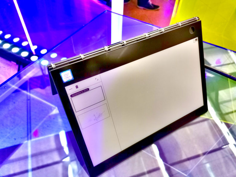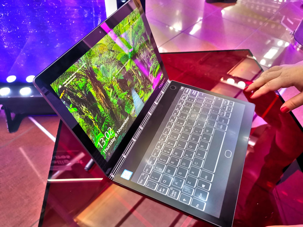A Lenovo a korábbi tapasztalatok alapján teljesen újragondolta a Yoga Book billentyűzetét, amibe a sima érintésérzékeny panel helyett egy 10,8 colos, Full HD felbontású e-papír kijelző került. Ennek számtalan előnye van, hiszen amellett, hogy a billentyűzet szabadon újrakonfigurálható (a touchpad például csak akkor jön elő, ha megérintjük), a kijelzőn bármi mást is megjeleníthetünk, így használhatjuk ekönyv-olvasóként, és a laptophoz járó digitális tollal jegyzetelhetünk vagy rajzolhatunk is rá.