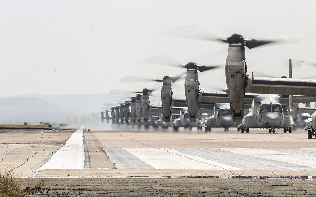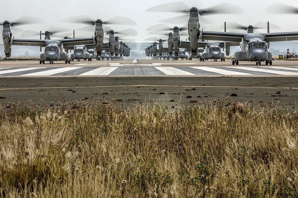 A haditengerészet miramari bázisán nem kevesebb, mint 26 darab V-22 Osprey "elefánt sétált", amelyek mögé a teljesség kedvéért még odaállt 14 CH-53E Super Stallion helikopter is.