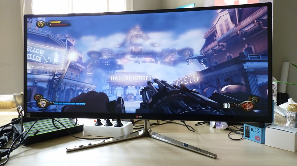 Lányos zavarunkban… a francokat, nem volt nálunk hirtelen más, úgyhogy ráengedtük az eredeti Mortal Kombatot. És jó volt. Hogy milyen volt a kép, az teljesen mellékes ügy, a játék gyönyörűen nézett ki 21:9-es arányban. Másnap összeszedtük magunkat, és egy csöppet komolyabb versenyzővel, a Bioshock Infinite-tel is meghajtottuk, de akkor még komoly gép hiányában szegény nem kaphatta meg a neki megfelelő felbontást. Az UC97-nek szüksége van egy igazi gépre ahhoz, hogy teljesíteni tudjon. Embertelenül jó rajta játszani, de csak akkor, ha egy megfelelő videokártya (GeForce 750 felett) dobog a házunkban, az ívelt kijelző ilyenkor is jó szolgálatot tesz élvezhetőség szempontjából. Szóval film, játék pipa. De mire használjuk még a gépünket?