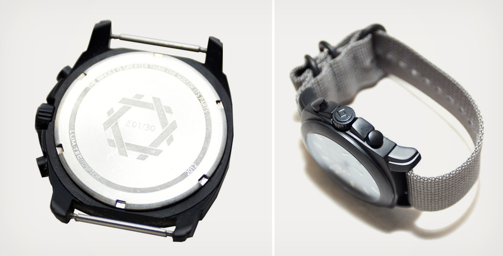 A DSPTCH hároméves évfordulója alkalmából összefogott a LUM-TEC-es srácokkal, hogy megalkossák ezt a nagyon penge, limitált szériás – mostanában csak limitált szériás karórákat gyártanak? – órákat. Rozsdamentes acéltokos, fekete mattszélű számlapja van és négyféle, antisztatikus gumiból készült, trükkösen csatolható óraszíj is jár hozzá – amennyiben megveszed a harminc darab egyikét.