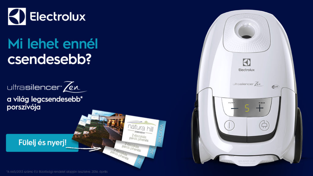 Hallgasd meg mennyire csendes egy Electrolux UltraSilencer Zen porszívó! Válaszolj helyesen egy kérdésre, és máris versenyben vagy a 2 éjszakás páros pihenésért a Natura Hill vendégházba. Játék itt!