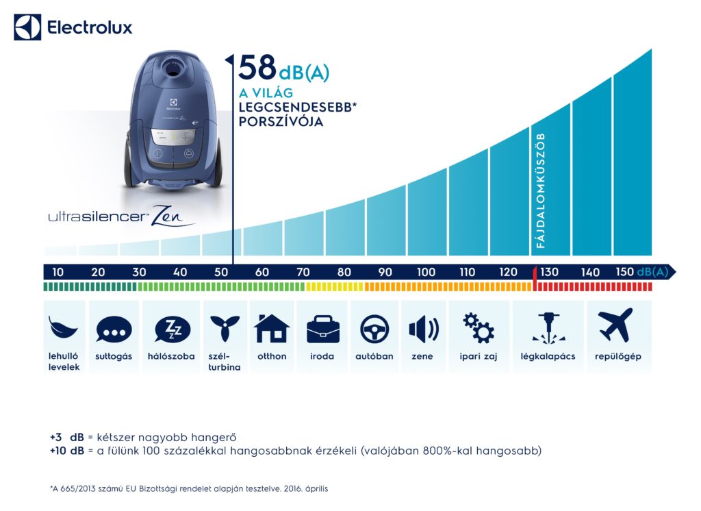 Az Electrolux felmérése szerint az emberek a hangos zajt utálják a legjobban a porszívózásban(közvetlenül azután, hogy meccsnézés közben valaki pont átmegy a tévé előtt a géppel), ezért állításuk szerint megcsinálták a világ legcsendesebb porszívóját.