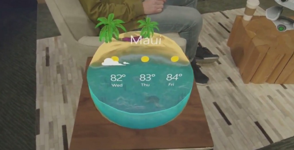 De persze nem muszáj síkban gondolkodni, hiszen az alkalmazásokat 3D-ben is használhatjuk, így például az időjárás applikációt kipakolhatjuk a dohányzóasztalra. Kezd már bizseregni, ugye?