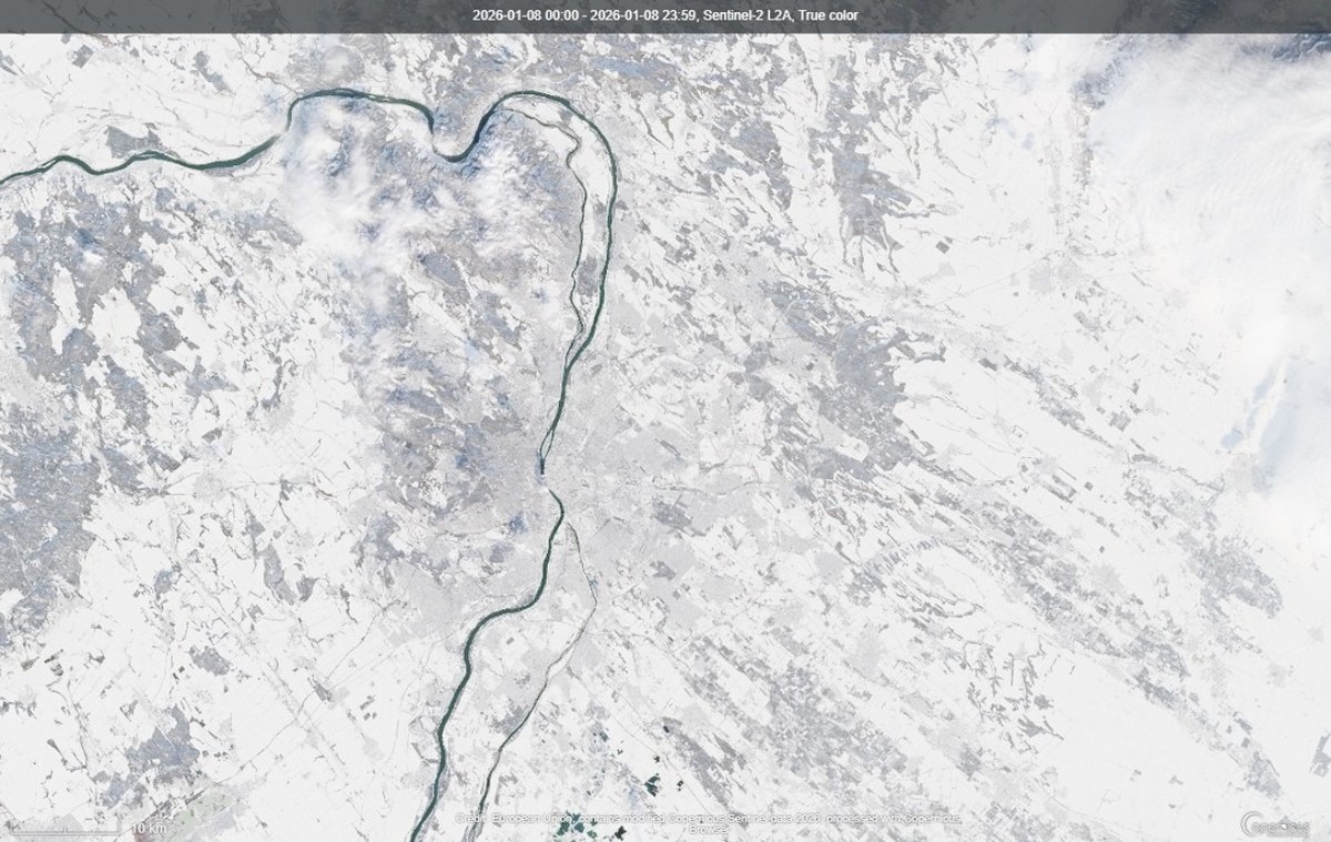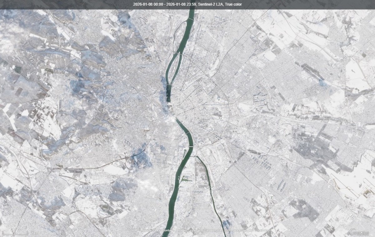 A fagyos légtömeg ugyanakkor nemcsak csípős hideget, hanem kifejezetten tiszta, napos időt is hozott magával. A derült égbolt pedig ideális körülményeket teremtett a műholdas megfigyelésekhez, így most felülről is látható, hogyan borult fehérbe, azaz havazódott be Magyarország – ritkán adódik olyan pillanat, amikor az egész országot összefüggő hótakarót borítja, most ez összejött, és még az űrből is látszik, ráadásul a Balaton befagyott felszíne is tisztán kivehető: