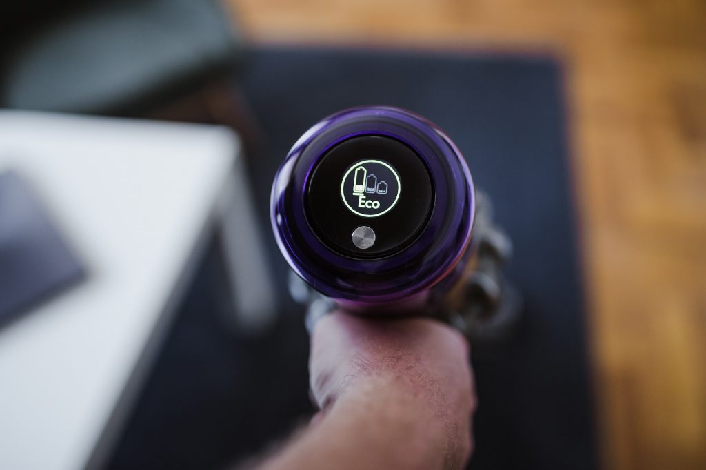 4. Három funkció közül lehet csak választani, így minden hülye érti és tudja majd használni a készüléket. Az ECO értelemszerűen az akksit kíméli, a BOOST a legerősebb funkció, az AUTO pedig a közepes, ám a szívóereje ennek sem kutya. Sőt, érzékeli, hogy padlólapon tolod vagy padlószőnyegen, esetleg valamilyen kisebb szőnyegre, kárpitra érsz, és nem kapja be az egészet, gyengébben szív, hogy tudj vele takarítani minden felületen. Ezt hogy? Hát egy Dynamic Load Sensor technológia bevezetésével (DLS), amivel a rendszer másodpercenként 360-szor ellenőrzi a tisztítókefére ható ellenállást, automatikusan a padlótípusokhoz igazítva a teljesítményt.