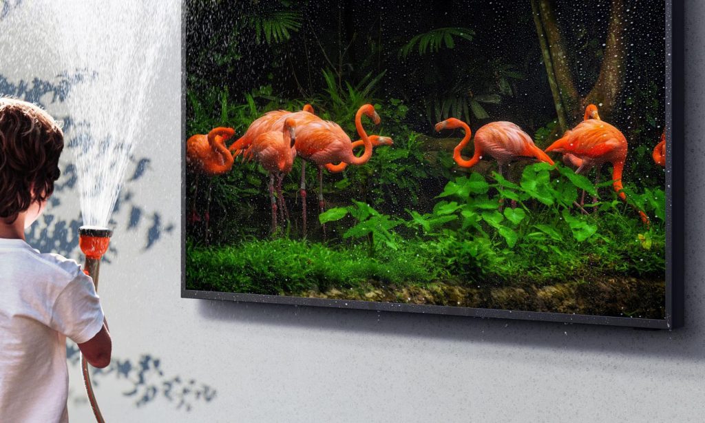 The Terrace névre hallgat a Samsung legújabb okostévéje, és a neve rögtön elmondja, hogy hol érdemes használni. A készülék ugyanis IP55 minősítéssel rendelkezik, ami azt jelenti, hogy a legtöbb időjárási körülménynek ellenáll, legfeljebb azt nem bírja ki, ha a buli végén sikerül a medencébe hajítani.