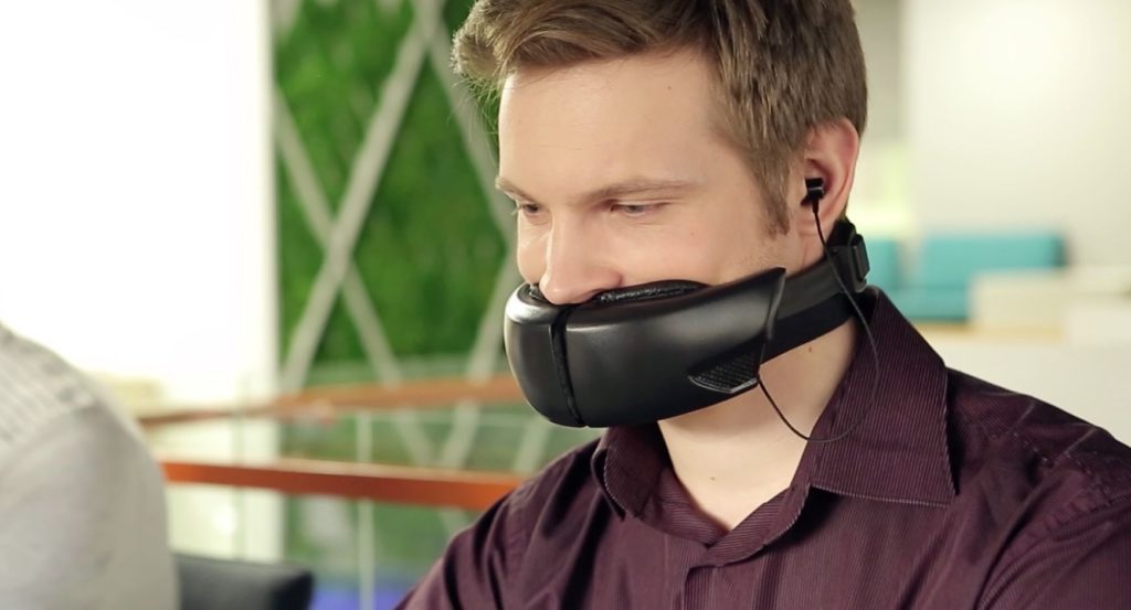 Ez a készülék a nyakad köré csúsztatva hordható, így ránézésre pont olyan, mint egy vezeték nélküli fejhallgató. Használat közben viszont teljesen elfedi a szádat, így a szájról olvasás kizárva, plusz tompítja a hangerősséget is, így igencsak hegyeznie kell a fülét annak, aki kíváncsiskodni akar.