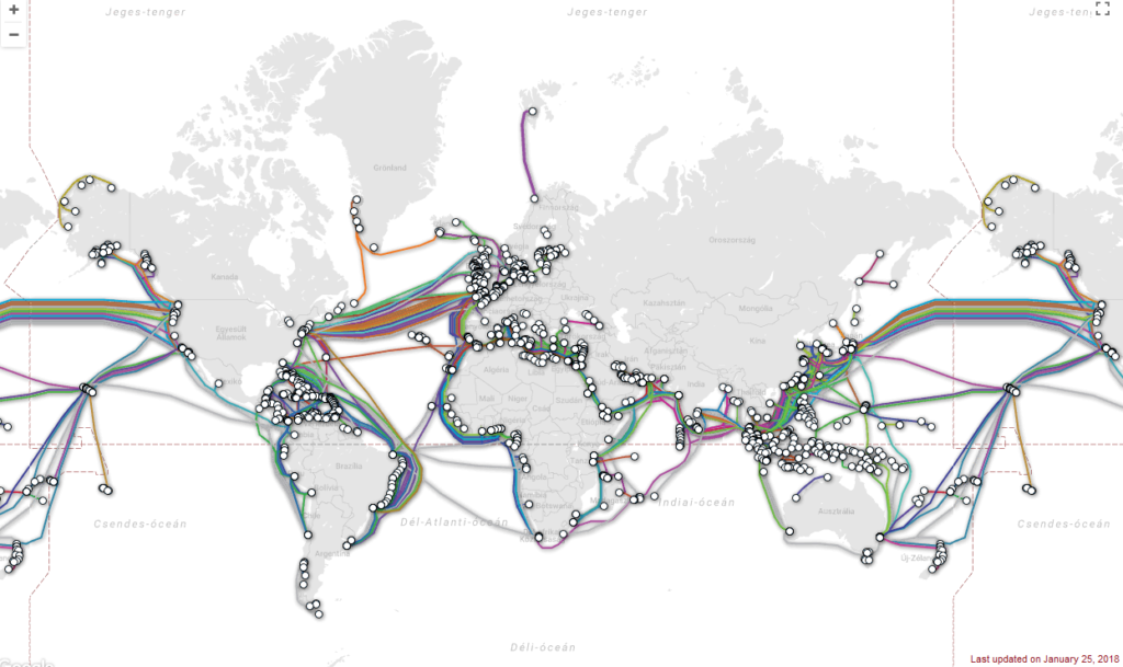 Az internet működése szempontjából ez a hatalmas kábelbirodalom ugye nélkülözhetetlen, az oldalt pedig folyamatosan aktualizálják – legutóbb 3 napja volt –, így folyamatosan a jelenleg érvényes térkép rajzolódik ki előttünk.