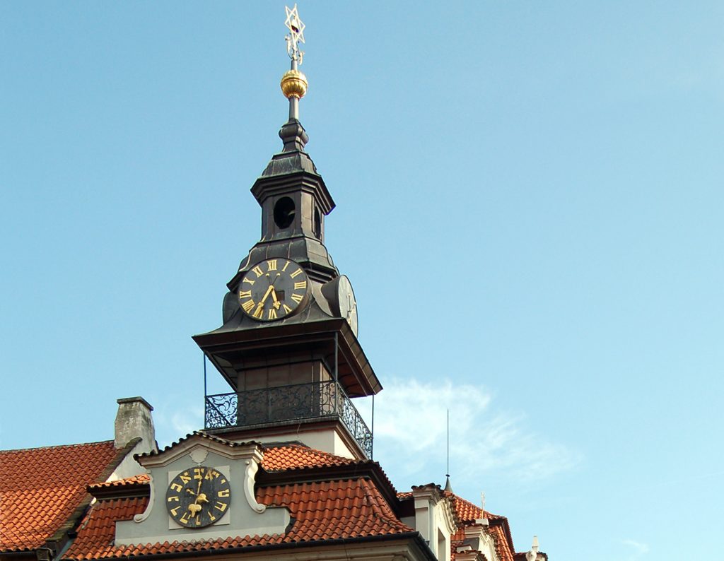 A másik a prágai Zsidó tanácsháza barokk épülete, amin két óra van: az egyiken római számok vannak, és a „normális” irányba haladnak a mutatói; a másikon héber számok vannak, és visszafelé haladnak a mutatói. Ez azonban nem teljesen meglepő: az olvasás is jobbról balra halad, illetve a tóra körbehordozásakor az óramutató járásával ellenkező irányba mennek a zsinagógában.