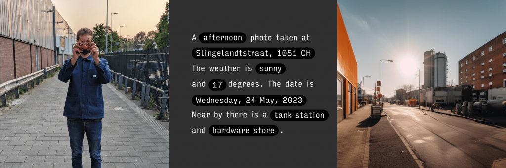 A Paragraphica nevet viselő művészeti projekt és bizarr megjelenésű eszköz a használója földrajzi adatai és egyéb nyilvános információk (mint például az aktuális időjárás, napszak, közeli intézményeket, postacím), illetve a mindezekből generált valós idejű leírás alapján készít képet – természetesen – a mesterséges intelligencia révén.