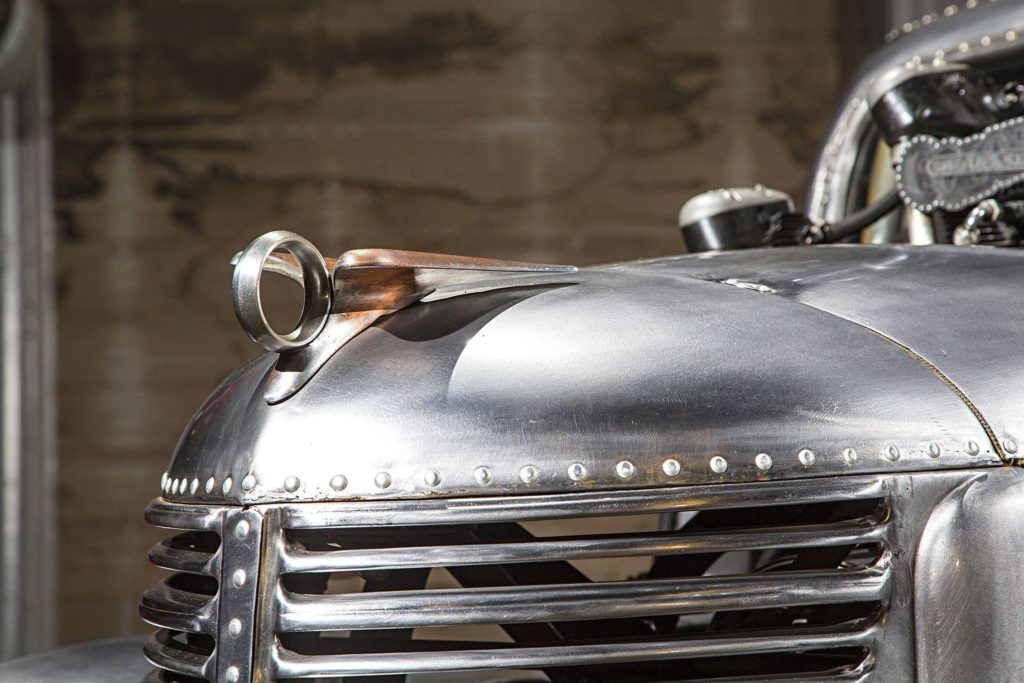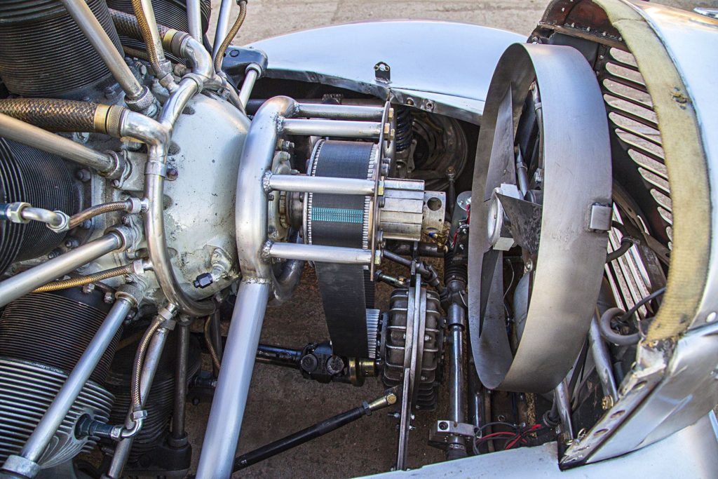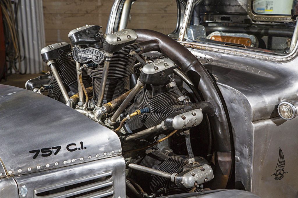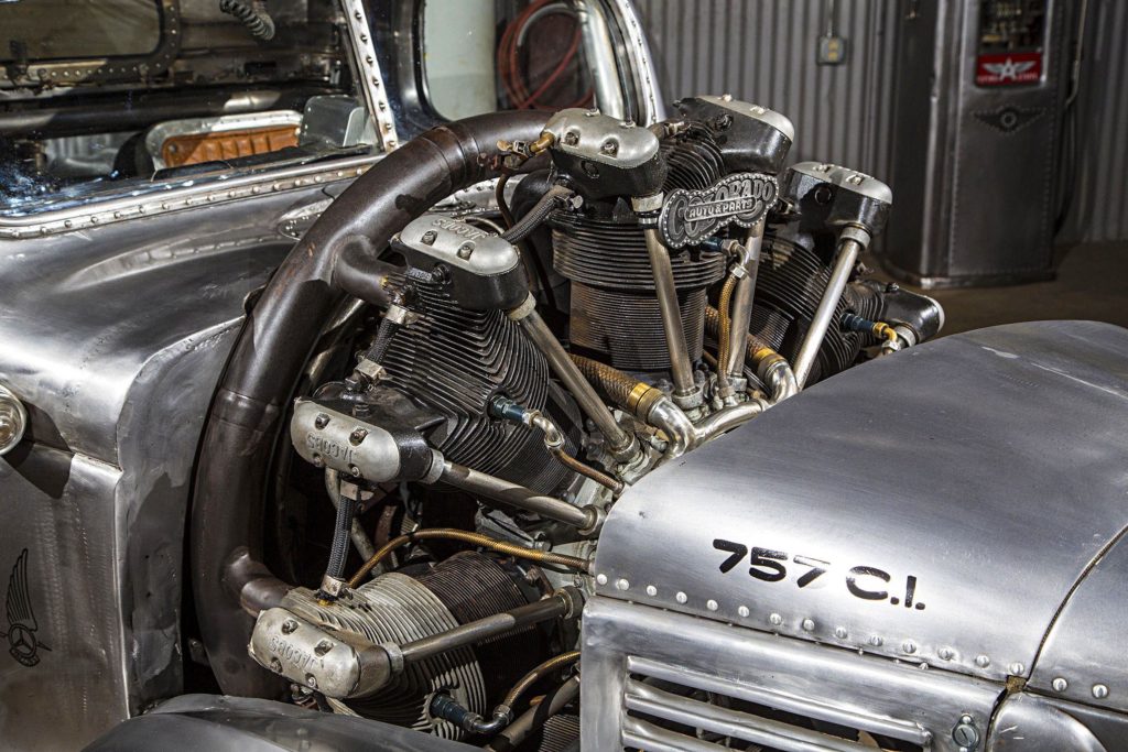 A héthengeres csillagmotornak minden irányban szűk volt a pickup eleje, mivel azonban az alváz úgyis szétrohadt, hosszabbra építették vissza, így csak felfelé lóg ki a közúti járműben erősen feltűnő, 12,4 literes szerkezet.