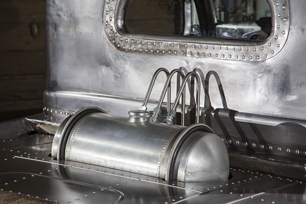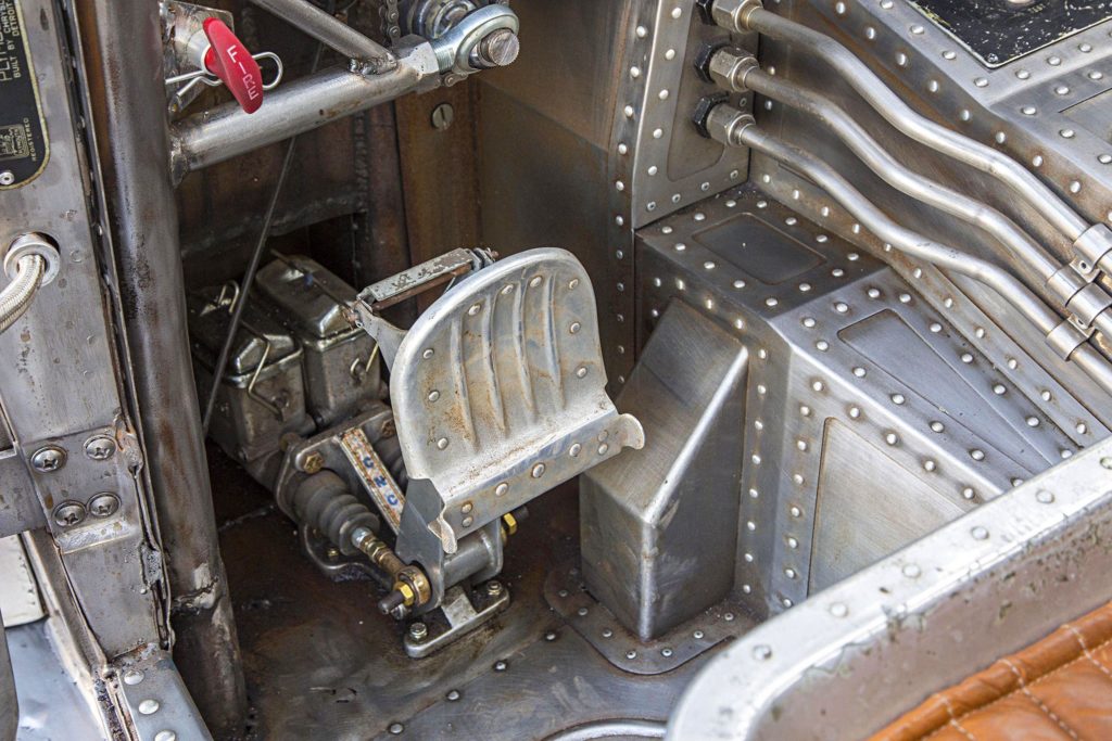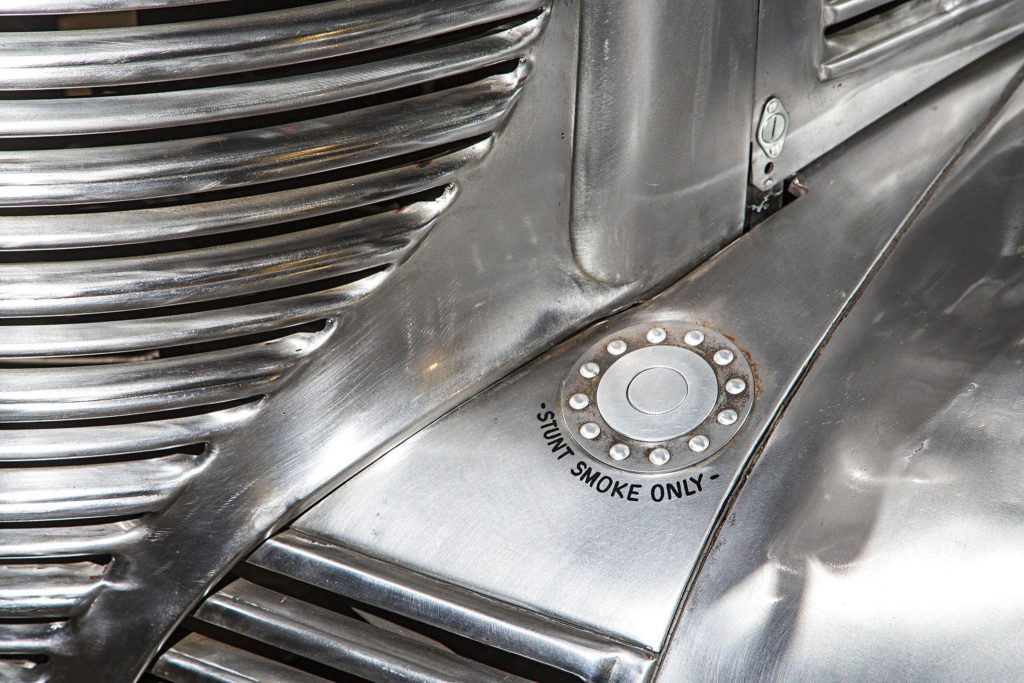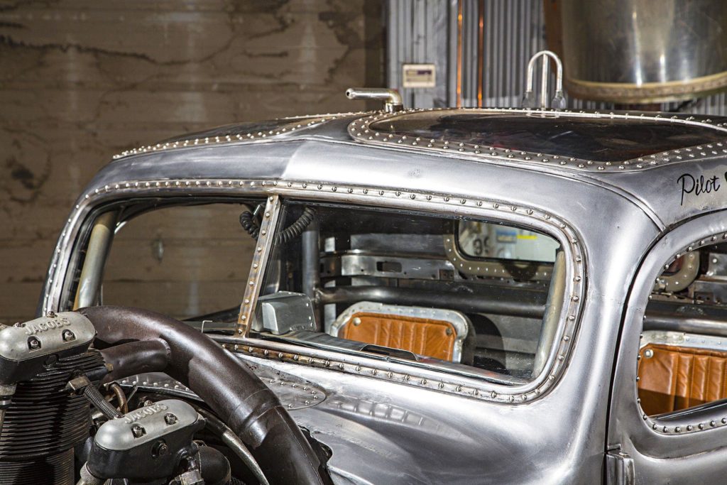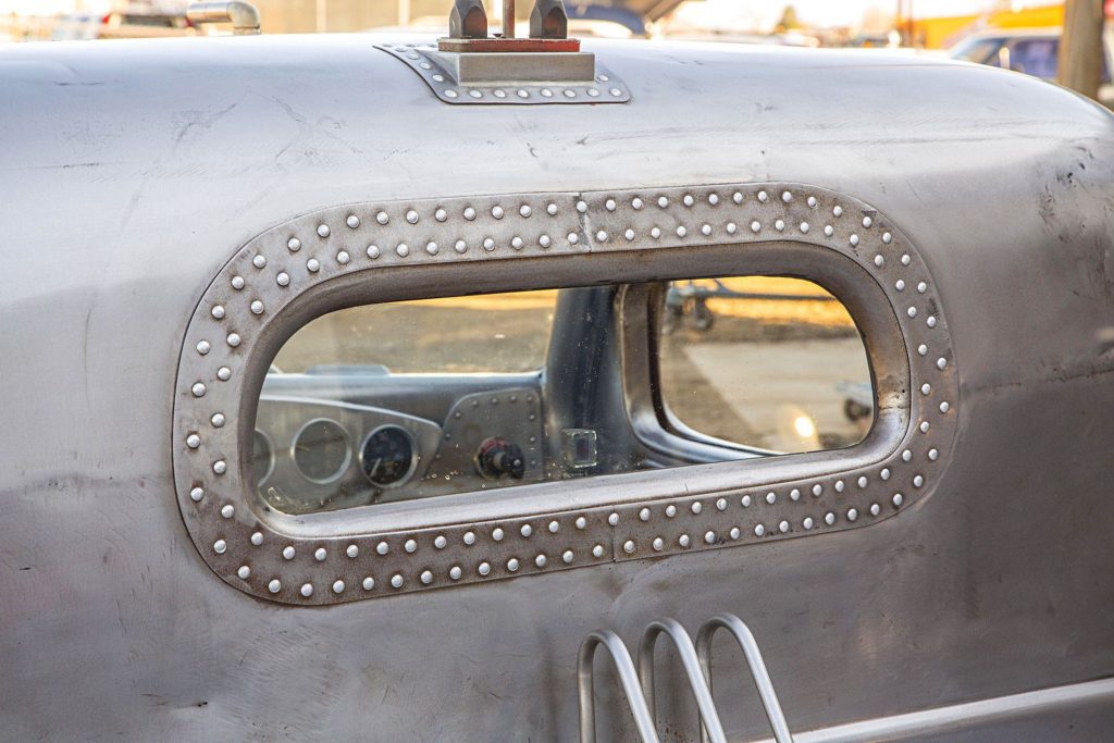 Az átalakítás nem merült ki ennyiben: az utastér is repülős hangulatú lett, még egy légcsavar is ott van dísznek, a karosszéria pedig fémtisztára csiszolva, némi kiegészítővel teszi tökéletessé az alkotást.