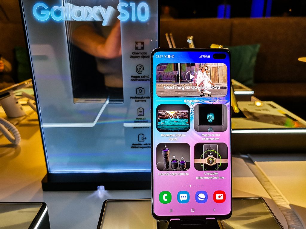 A Samsung a tegnapi bemutatón négy (plusz egy) különböző telefonról lebbentette fel a fátylat, amelyek közül az S10 Plus-t volt szerencsénk közelebbről is szemügyre venni.