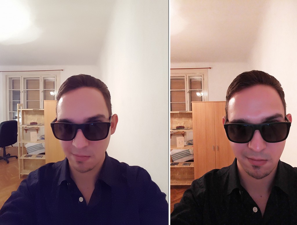 Az előlapi kamera sokáig csak amolyan dísznek volt a telefonokon, hiszen ha az ember tisztességes szelfit akart készíteni, akkor úgyis inkább megfordította a telefont. Ez ma már nem így van, sőt, a másodlagos kamerába egy csomó olyan funkciót is belepakolnak (pl. arcszépítés), ami kifejezetten szelfihez lett kitalálva. A Samsung Galaxy S6 Edge+ öt megapixeles kamerája ugyan minőségben nem a legjobb, de a szokatlanul széles látószög komoly előnyt jelent, így mi ezt inkább pozitívumként értékeltük (amúgy az ingem kék színű).
