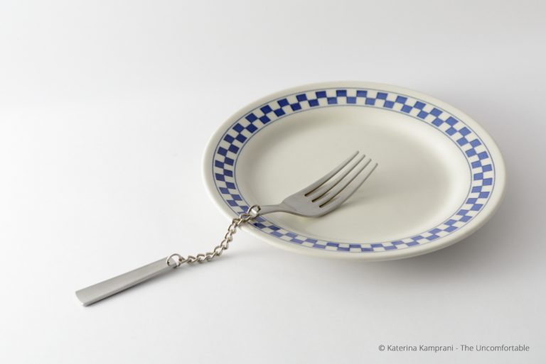 Egycentis vonalzó, kétfejű pohár, láncos villa... Katerina kreativitása egyszerűen nem ismer határokat, ha arról van szó, hogyan lehet valamit egy egészen pici változtatással nagyon kellemetlenné tenni. A márkanév (ami magyarul kényelmetlent jelent) is telitalálat, hiszen amikor elképzeled, hogy életed végéig ezeket a dolgokat kéne használnod, pont olyan érzés hasít beléd, mintha mostantól csak vizes zokniban lehetnél vagy mondjuk csak fél lábon állhatnál. És persze hálát adsz a bögre meg az esernyő feltalálójának, hogy kevésbé volt sötét humoruk, mint Katerinának.