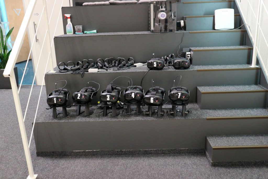 Az élmény még úgy is lenyűgöző, hogy a sisak felvétele után bennünket körülvevő virtuális világ azért jóval elnagyoltabb, mint a valódi. Az akár féltucatnyi sisakban ide-oda mászkáló, nézelődő emberek számára folyamatosan valós időben álvalóságot teremtő, bizonyos szintig interakciókat is megengedő rendszer még így is rettentően hardverigényes. Minden sisakot egy-egy dedikált wifi-router szolgál ki (ezek ott sorakoznak körben a csarnok falain), minden VR-eszköz külön számítógépre csatlakozik, ezek működését koordinálja a Virtuplex rendszere, és közben még a virtuális környezetben istent játszó kezelő számára is elő kell állítania a komplex VR-világ kétdimenziós, valós idejű leképezését.