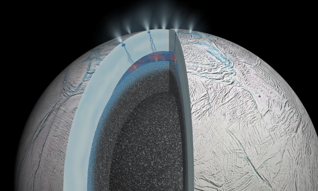 Ennél is izgalmasabb, amit a kutatók egy jóval kisebb égitesten, a Szaturnusz körül keringő Enceladuson találtak. A Cassinis űrszonda azt már korábban megállapította, hogy a mindössze 500 kilométer átmérőjű hold jeges felszíne alatt nagy mennyiségű sós víztömeg lehet, amely néha gejzírként a felszínre tör, a legújabb kutatások viszont azt is bizonyítani látszanak, hogy ez a víz meleg, nagyjából 90 Celsius fok körüli hőmérsékletű.