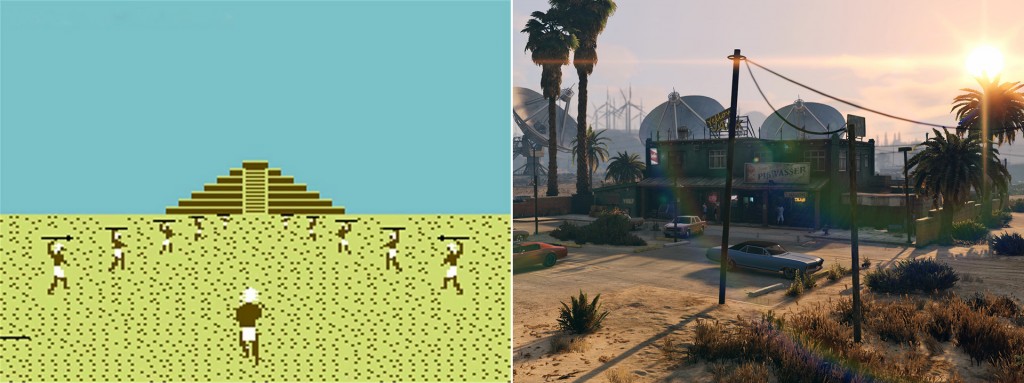 Nem látod a hasonlóságot az Aztec Challenge és a GTA V között? Pedig a két játék tök ugyanúgy készült: emberek leültek, aztán megrajzolták valamilyen programnyelvben. Manuálisan. Mint a kódexmásolók a könyveket. Persze a GTA V esetében ehhez sokkal több embernek kellett ülnie sokkal hosszabb ideig, de amikor erre gondolunk, azért eléggé hiányzó láncszemnek érezzük magunkat.