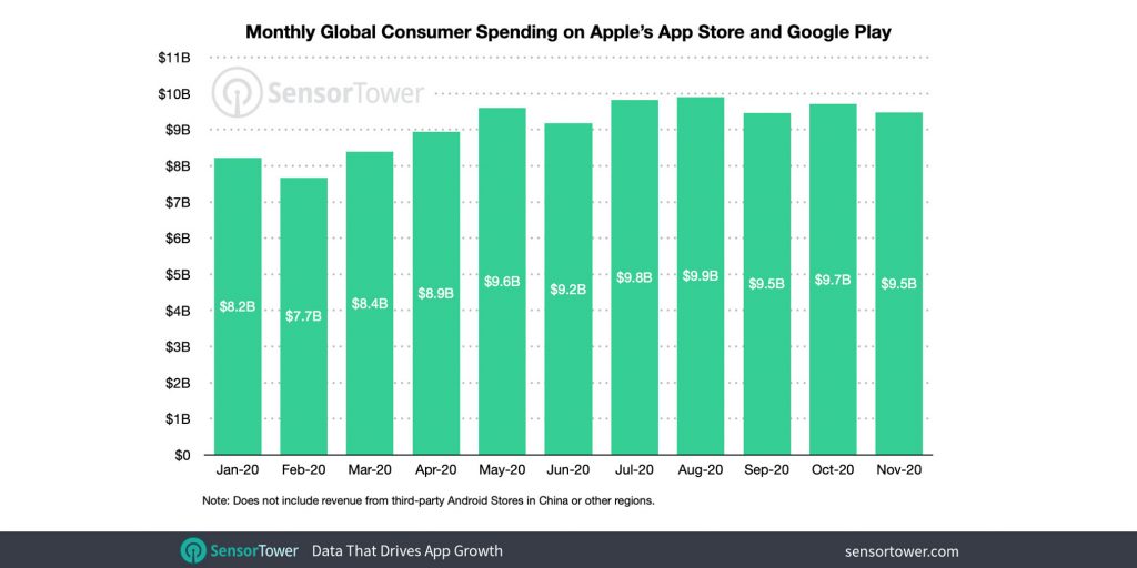A Sensort Tower közzétette beszámolóját, amiből azt tudhatjuk meg, mennyit költöttünk világszerte iOS- és Android-alapú alkalmazások letöltésére (a merőben furcsa) 2020-ban. Kifejezetten sokkoló eredmény jött ki, ugyanis csak decemberig, azaz az első 11 hónapban