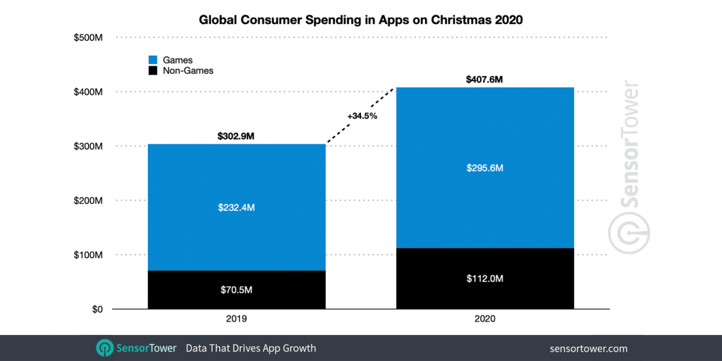 Igen, ebben még nincs benne a karácsonyi időszak, amikor is a költekezés nyilvánvalóan nem torpant meg, annyira nem, hogy közel 408 millió dollár pengettünk ki mindenféle Apple-/Google-appra – talán nem meglepő, hogy ennek háromnegyedét a játékletöltések adják: