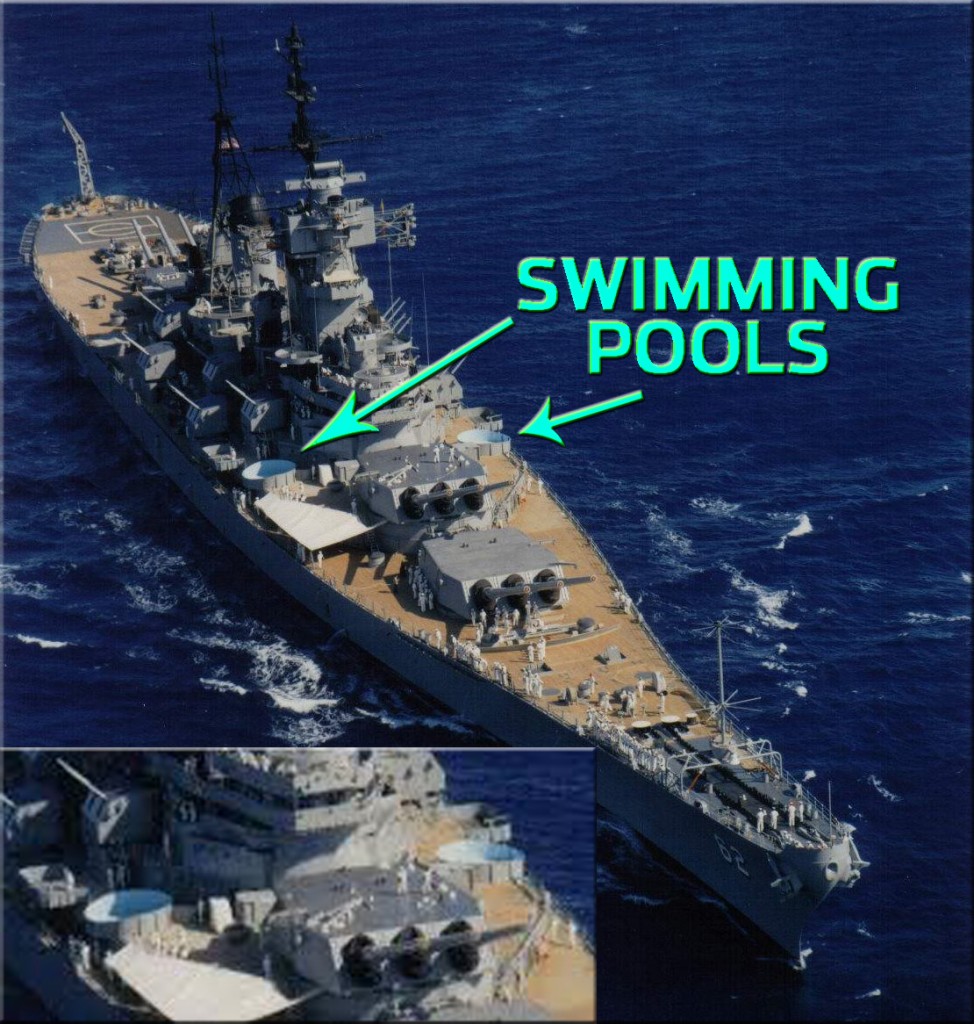 Történt ugyanis, hogy az 1960-as évek végére kezdett kicsit forró lenni a talaj az amerikaiak lába alatt Vietnamban, akik a különleges helyzetre való tekintettel úgy döntöttek, hogy reaktiválják az egyszer már nyugdíjazott Iowa osztályú hadihajót. A rohamtempóban elvégzett felújítás alatt lekapták a hajó két oldaláról a 20 valamint 40 milliméteres gépágyúkat, a kreatív tengerészek pedig azonnal meglátták a helyzetben a Playboy-villa faktort, és a felszabadult teknőket azzal a lendülettel medencévé alakították át.