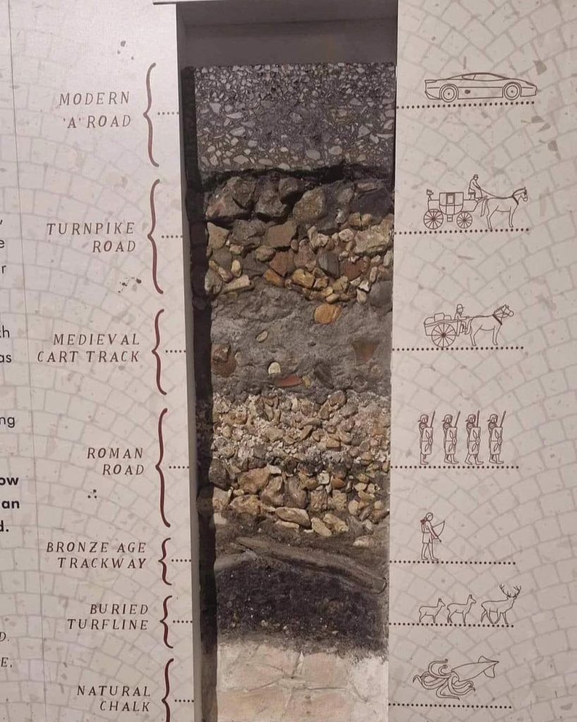 Mindenesetre az új keresztmetszete alapján remekül feltárult a rétegrend, ahogy a különböző korszakokban különböző anyagokon közlekedtek rajta: