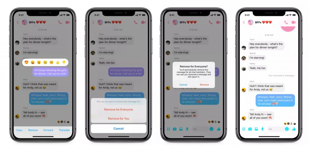 Az üzenet visszavonásához nincs más dolgod, mint hosszan rányomni a szövegre, majd a "Remove for Everyone" opciót választva törölheted a gondolataidat az univerzumból. Az új funkciót a Facebook fokozatosan vezeti be a Messenger legújabb verziójával, vagyis feltehetőleg már csak napok kérdése, hogy hozzánk is megérkezzen.