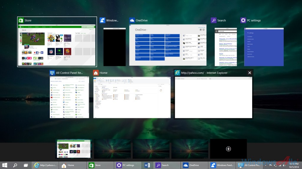 A Microsoft végre rájött, hogy soha élő ember nem használta az Alt+Tab billentyűkombinációt az ablakok közötti váltásra (kivéve én, de ez most mindegy), így a hatékony multitasking ösztönzése végett kitalálták a Task View-t, amiben egy ablakban láthatod az összes megnyitott ablakot, és ezt a funkciót egy dedikált gombbal bármikor bárhonnan könnyen elő lehet hívni.