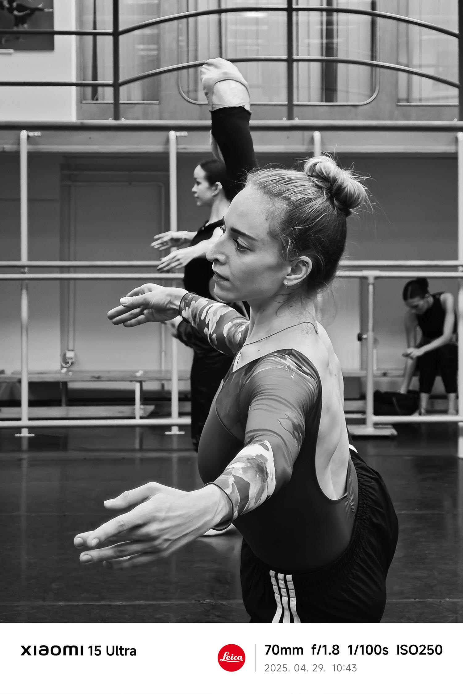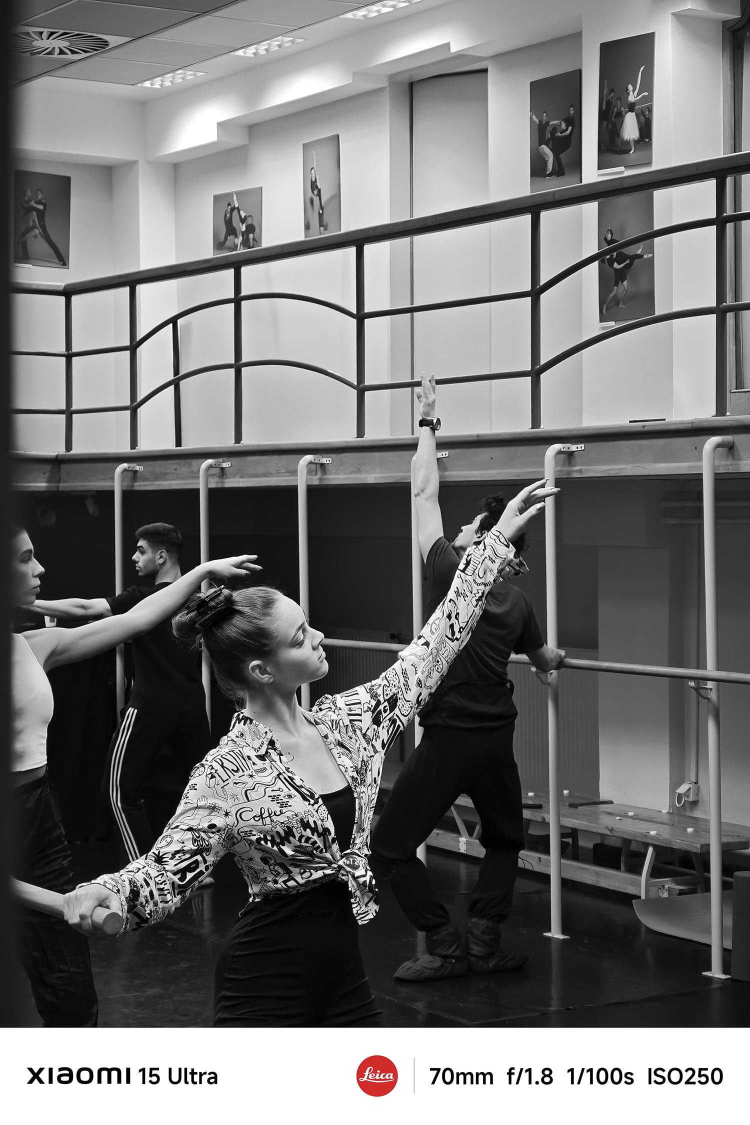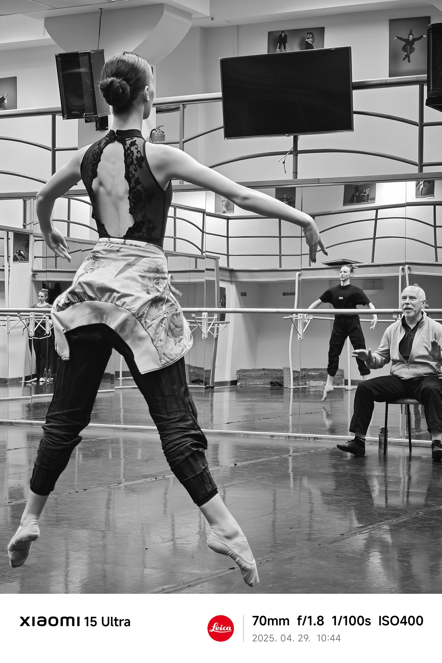 A profi fotózásban ritkán kap szerepet egy okostelefon, de Lívia a Xiaomi 15 Ultrával a kezében már az első kattintások után otthonosan dolgozott. 70 és 100 mm-es teleobjektív-tartományban is tudott vele dolgozni, ami azért is fontos, mert a próbák során nem lehet közel menni a táncosokhoz. A 200 megapixeles Leica ultra telefotó kamera 14 és 200 mm közötti zoomtartománya pedig különösen hasznos egy olyan közegben, ahol fontos a mozgás, a mélység és az intimitás megőrzése. Lívia szerint a képek élessége, részletgazdagsága és mélysége egyszerűen lenyűgöző, és a fekete-fehér mód is nagy kedvence lett, mint mondja, nem vonják el a színek a figyelmet, így a fény és árnyék játéka tökéletesen érvényesül.