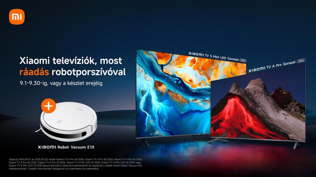 Most még inkább érdemes próbát tenned a Xiaomi okostévéjével, a márka ugyanis egy igencsak vonzó ajánlattal készült. 2025. szeptember 1-30-ig – vagy a készlet erejéig – ha a résztvevő partnereknél vásárolsz a fenti okostévékből, és regisztrálsz, akkor ráadásként megkapod a Xiaomi Robot Vacuum E10 robotporszívóját is. Intelligens útvonaltervezésével, összetett érzékelőrendszerével, mindössze 8 centiméteres magasságával és okosotthonhoz kapcsolható vezérlésével ez a porszívó garantálja az otthonod tisztaságát.