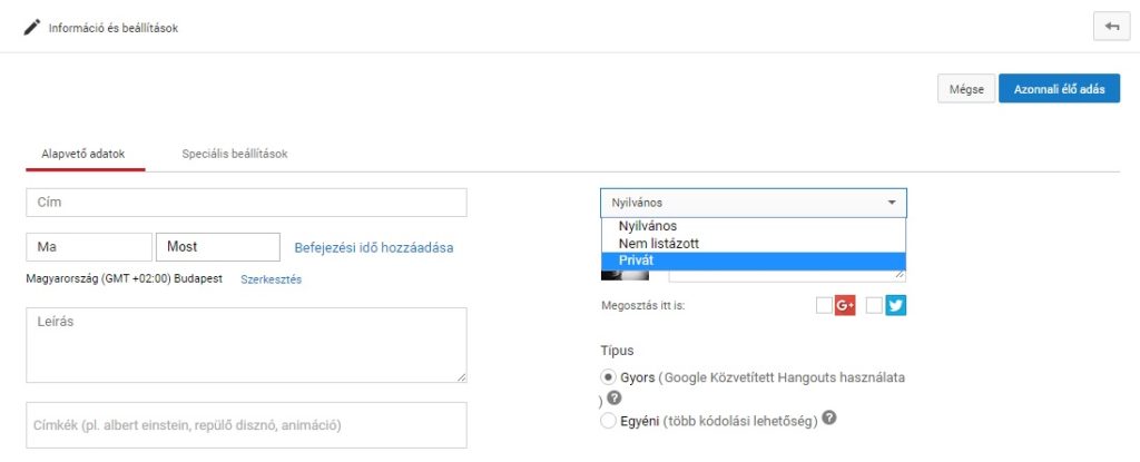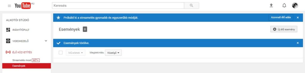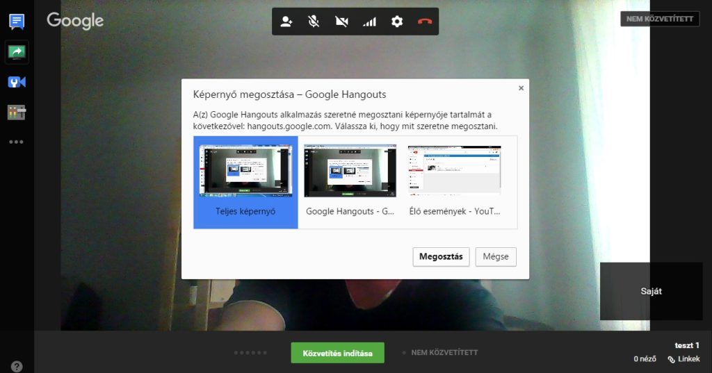 6. Kattints a Megosztásra, majd a Közvetítés indítása gombra. A videó a Youtube-on az Események között lesz elérhető.