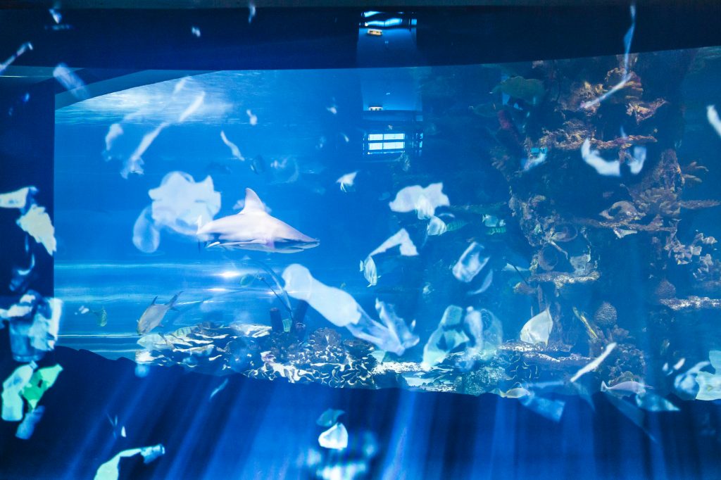 A véget nem érő műanyagszemét-termelés és a nagyvizek élővilágának veszélyeztetettségére hívja fel a figyelmet az installáció.