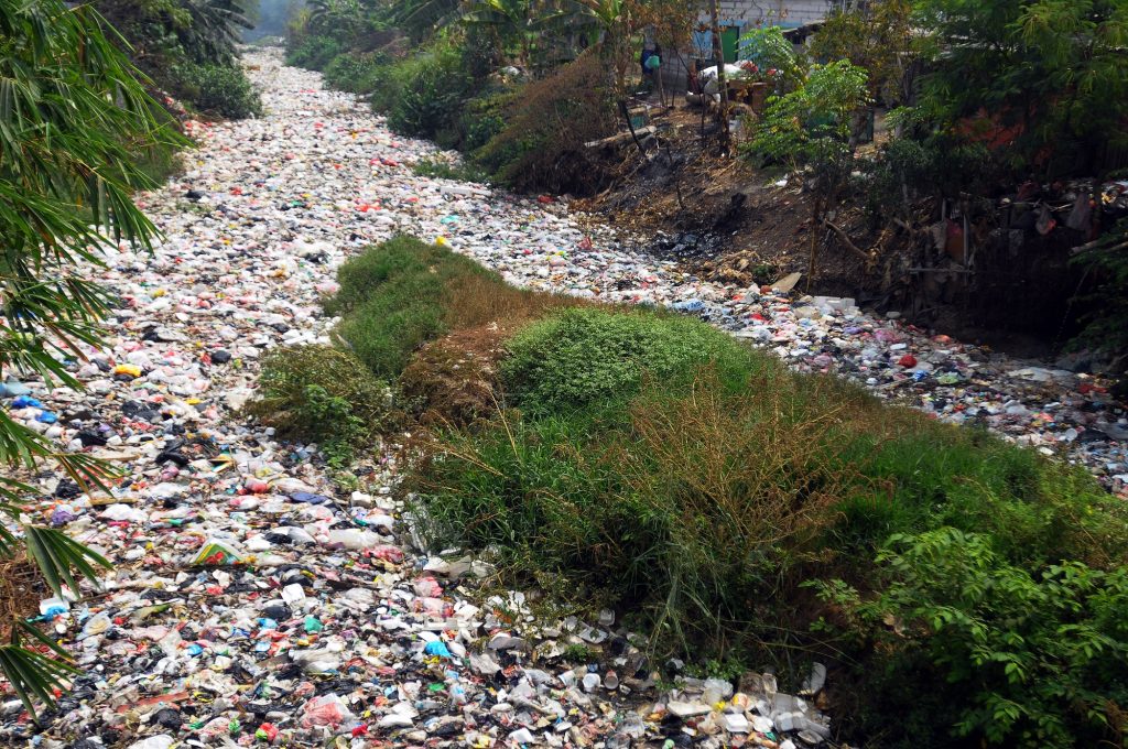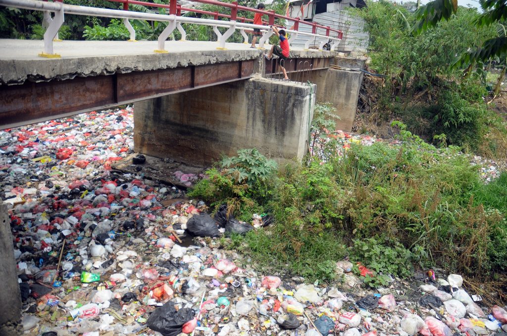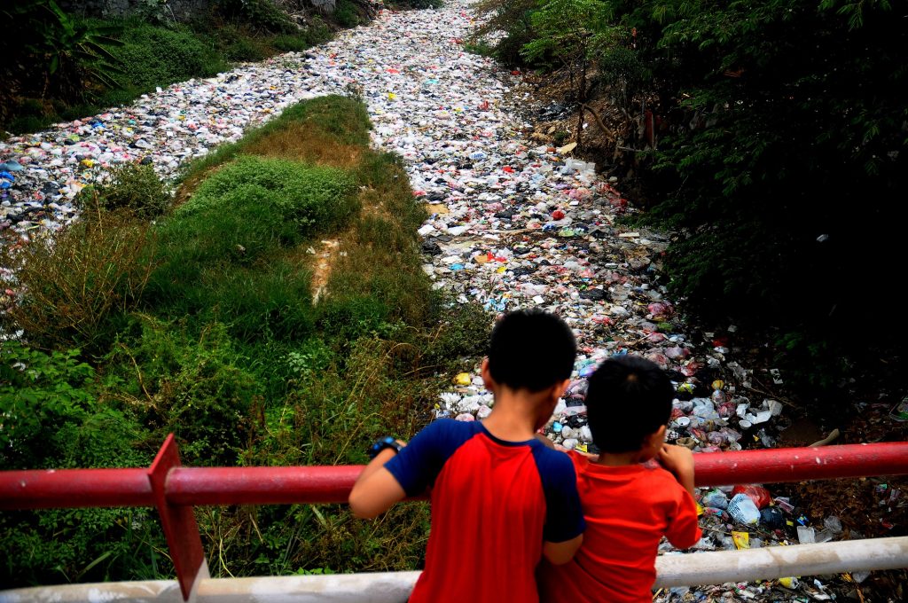 Ezek a képek tavaly szeptemberben készültek Indonéziában, a Nyugat-Jáva tartománybeli Tambunban. Ahogy a híd és a partfalak is sejtetik: a rengeteg műanyag hulladék, zacskó, flakon és háztartási szemét egy folyócska, a Jambe medrét borítja be.
