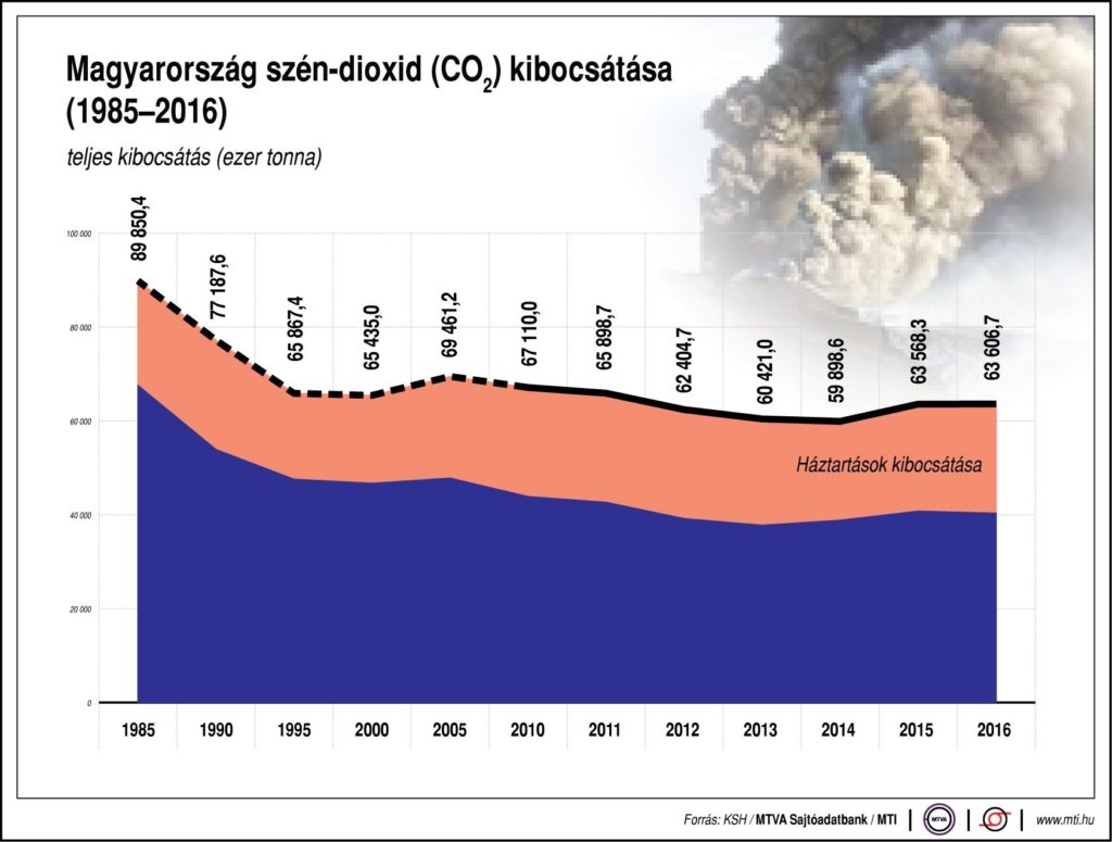 Látható, hogy csökkenés helyett nálunk még nőtt is a szén-dioxid-kibocsátás – nem véletlen, hogy a közhelyesen szennyezett indiainál és kínainál is szennyezettebb levegőt szívunk.