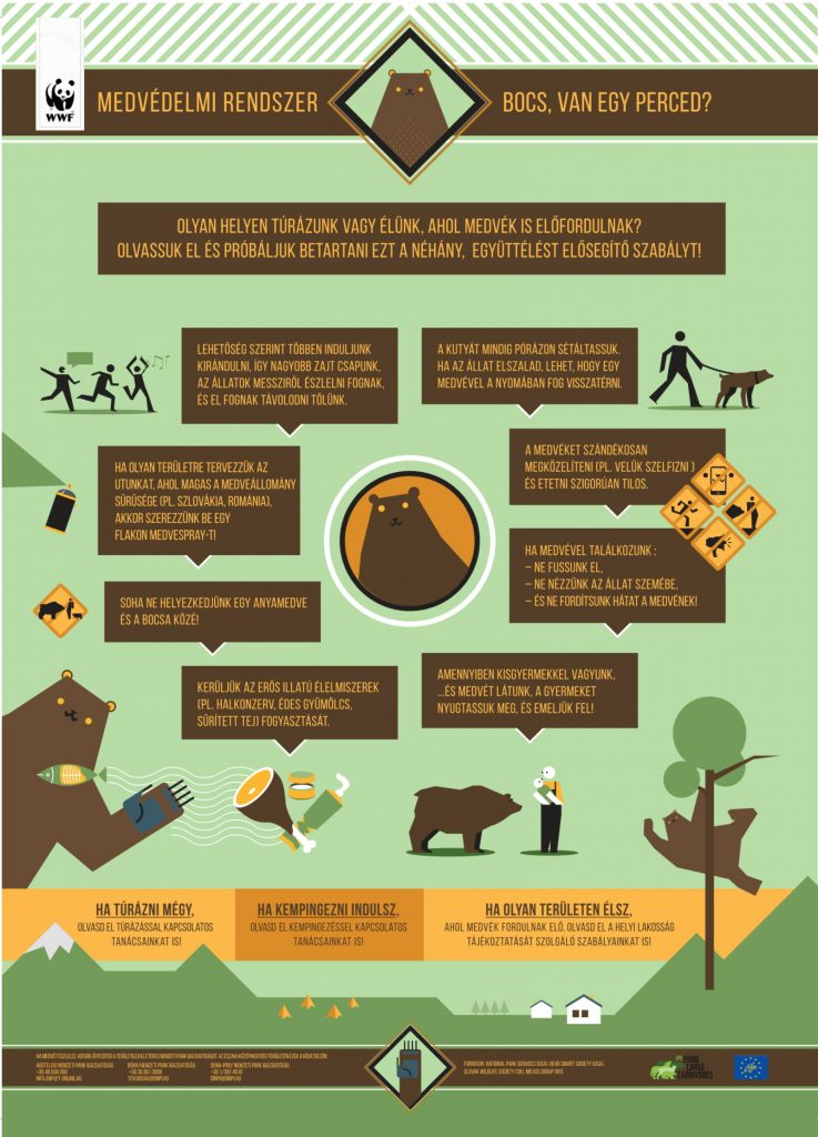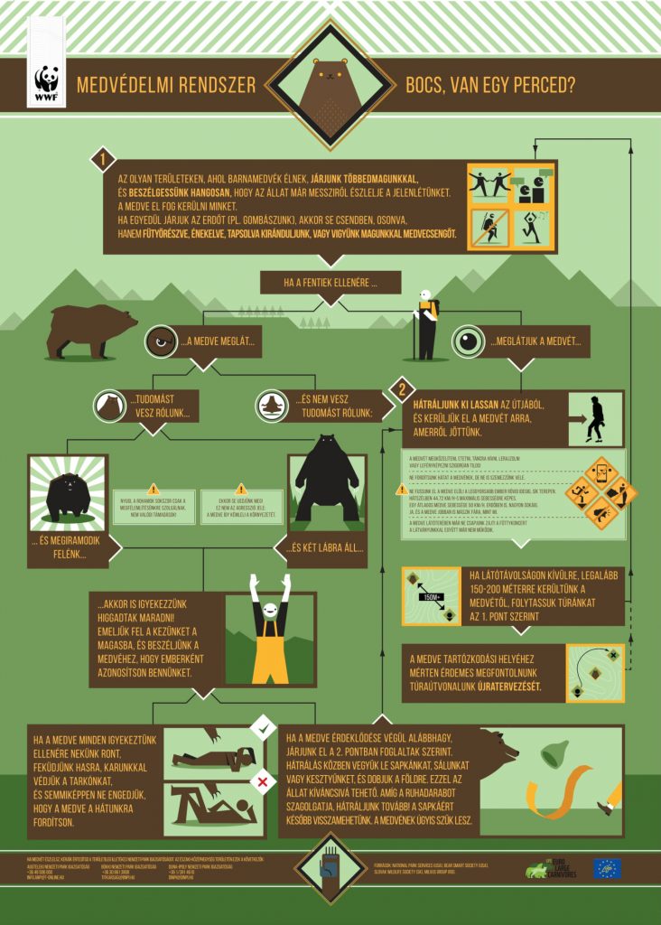 Egyetlen esélyünk van a medvével szemben, aki gyorsabban fut, jobban mászik fára, jobban úszik, és néhányszor erősebb nálunk: hogy gondolkozunk. A WWF infografikái abban is segítenek, hogyan kerülhetjük el a találkozást, és abban is, mit kell tenni, ha ez nem sikerült, de azért szeretnénk túlélni a dolgot.