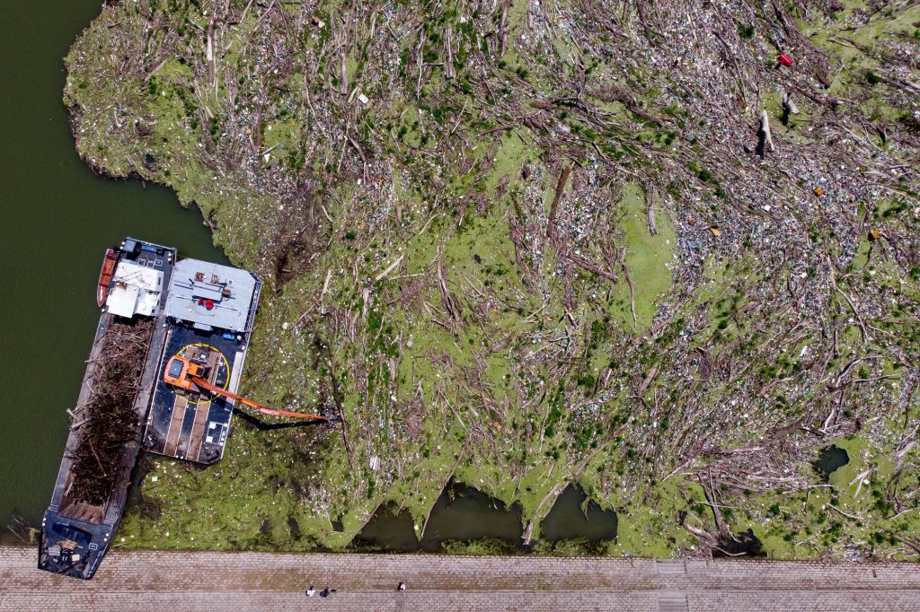 a Kiskörei vízlépcső felvízi oldalán. Az uszadékmező felülete eléri a 17 ezer négyzetmétert, és közvetlenül a duzzasztómű előtt a vastagsága a három métert is meghaladja. Mivel ez a mennyiség közel duplája a korábbi évek legjelentősebb szennyezéseinek, a Közép-Tisza-Vidéki Vízügyi Igazgatóság munkatársai napi 12 órában úszó-rakodó munkagéppel egy 200 tonnás uszályra termelik ki a hulladékot.