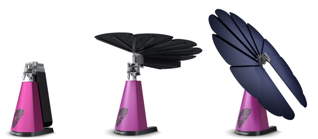 Az osztrák Smartflower éppen ezt teszi: virágszirom alakú paneljei automatikusan nyílnak, és GPS segítségével, két tengely mentén mozogva mindig az ideális szögben állnak. Nyitáskor-csukáskor a panelek mechanikusan megtisztulnak a portól, ha pedig túl nagy a szél, a szirmok becsukódnak, majd újra kinyílnak, amikor már lehet.